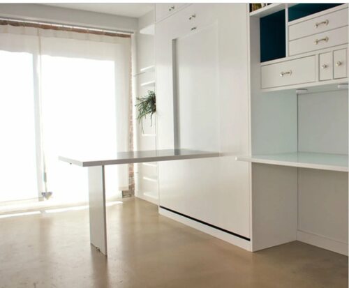 Существует множество вариантов дизайна встроенного стола в стену на кухне. Он может быть складным, раскладывающимся или даже выдвижным, что позволяет экономить место, когда стол не используется.