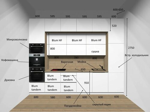 Кухня угловая с пеналом для духовки и микроволновки схема