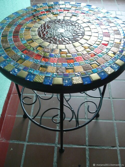 Кованый столик из плитки мозаики