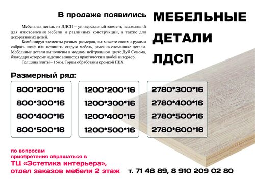 Плиты для мебели являются важным материалом при создании различных предметов мебели. Они могут иметь различные размеры, что позволяет создавать уникальные и функциональные дизайны.