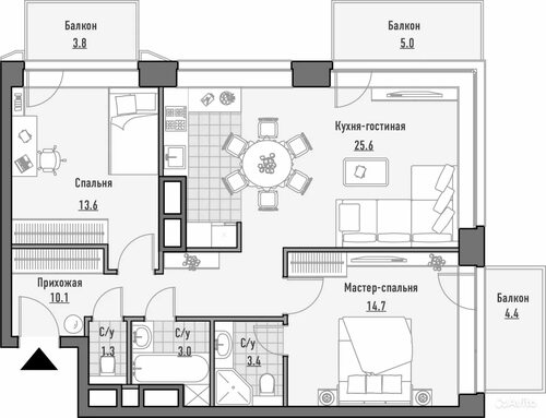 Более подробные варианты планировки и дизайна квартир с двумя спальнями и кухней-гостиной вы можете увидеть на фотографиях ниже.