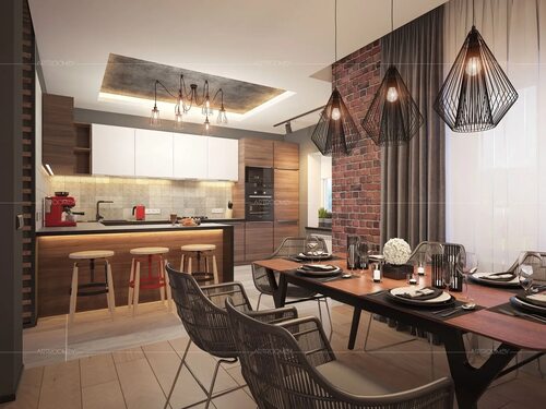 Кухня со столовой в стиле лофт сочетает в себе простоту, функциональность и современный дизайн. Этот стиль отлично подходит для тех, кто ценит пространство, свет и минимализм. Он также позволяет оставить видимыми элементы промышленного дизайна, что придает интерьеру особый шарм.