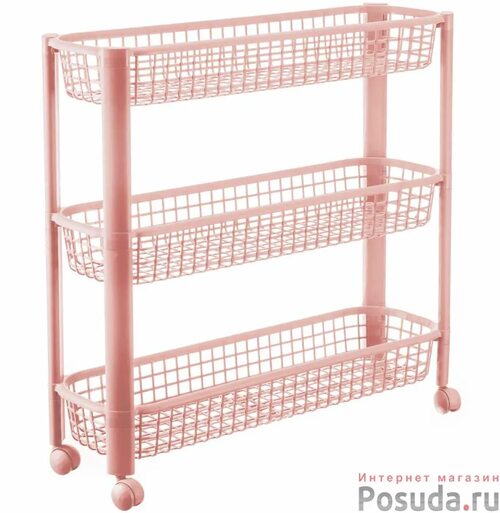 Пластиковая 3-х ярусная Этажерка на колёсиках, 40х14х65 см