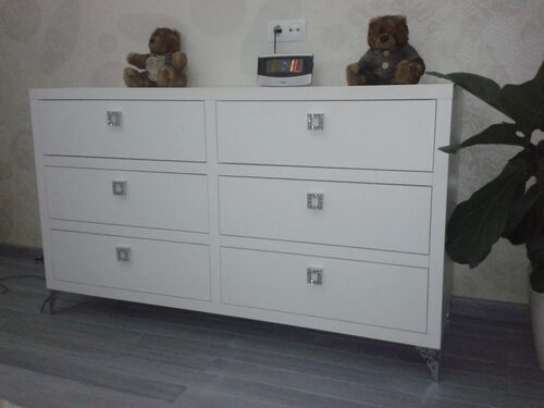 Подробную инструкцию по созданию комода из белого ДСП смотрите на фотографиях ниже.