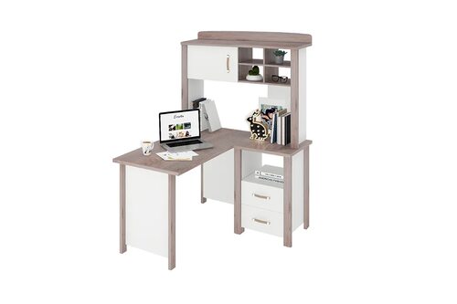 Угловые столы с надстройкой - это отличное решение для эффективного использования пространства в доме или офисе. Белый цвет придает им легкость и воздушность, делая интерьер более светлым и просторным.