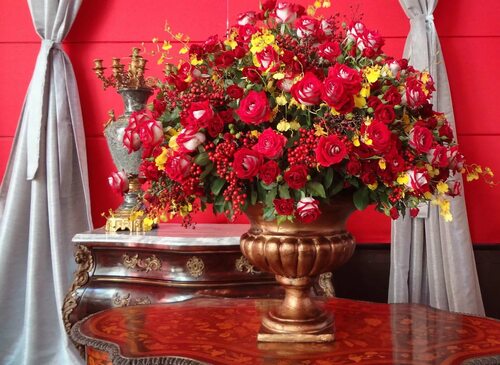 Гостиная - это место, где мы проводим большую часть времени в доме, поэтому ее декорирование играет важную роль. Красные розы могут стать прекрасным акцентом в интерьере гостиной. Вы можете разместить букет красных роз в стеклянной вазе на кофейном столике или использовать их для украшения камина. Красные розы прекрасно сочетаются с нейтральными тонами мебели, создавая контрастный и эффектный образ.