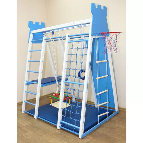 Напольная шведская стенка для малышей обычно имеет небольшие размеры и легко помещается в детскую комнату. Она оснащена различными перекладинами, брусьями, канатами и другими элементами, предназначенными для занятий спортом и развития моторики у детей.