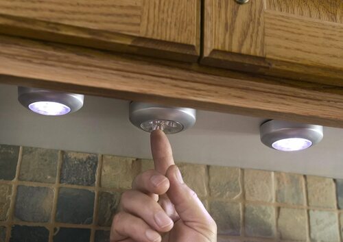 Преимущества накладных светильников на кухню под шкаф на батарейках