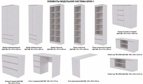 Бриз 1 предлагает широкий выбор модулей, которые можно комбинировать и адаптировать под любые потребности. Независимо от размера или стиля вашего помещения, вы сможете найти идеальное решение с помощью этой модульной системы.
