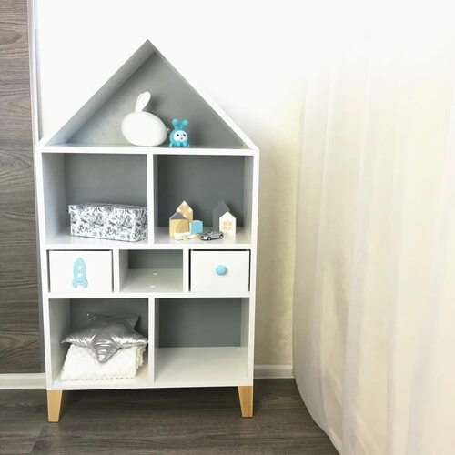 Стеллаж для игрушек в форме домика с ящиками - отличное решение для детской комнаты. Этот функциональный предмет мебели не только поможет организовать хранение игрушек, но и станет ярким акцентом интерьера.