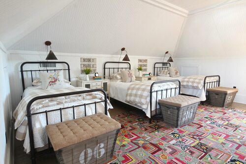 1. Разнообразие кроватей. Разместите три кровати разного размера или формы, чтобы создать интересное и уникальное пространство.