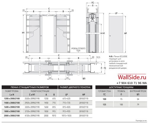 Высота проема для раздвижной двери межкомнатной 2 полотна
