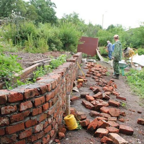 После укладки кирпичей необходимо закрепить стенку и обработать поверхность для защиты от внешних воздействий. Теперь ваша подпорная стенка из кирпича без фундамента готова!
