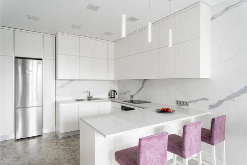 Мрамор в интерьере кухни