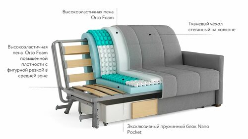 Ортопедический пружинный матрас обеспечивает правильное положение тела во время сна, способствуя расслаблению мышц и улучшению качества отдыха. Кроме того, диван аккордеон занимает минимум места в сложенном состоянии, что особенно актуально для небольших помещений.