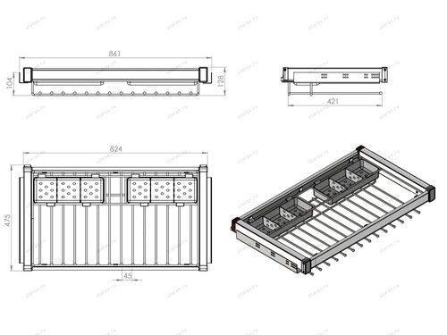 Dorwell universale брючница выкатная, 330x467x100мм, правое крепление, Art. 7425
