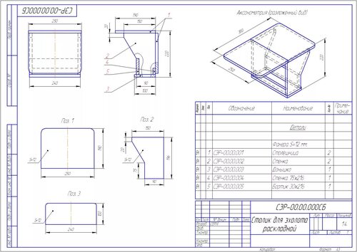 Чертеж столика для ноутбука