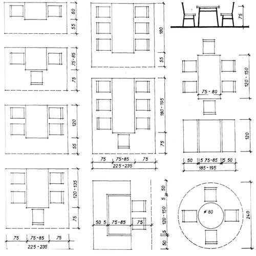 Высота обеденного стола и стула стандарт чертеж