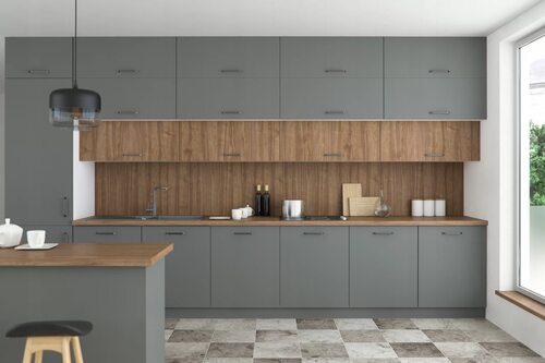 Используйте оттенок ral 7037 для фасадов кухонных шкафов, сочетая их с яркими акцентами или нейтральными оттенками стен. Этот цвет также отлично сочетается с натуральными материалами, такими как дерево или камень, добавляя теплоты и уюта в интерьер.