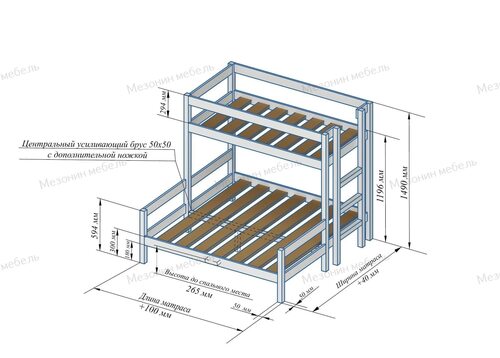 Двухъярусная кровать Юниор 2 Подробный чертеж с размерами