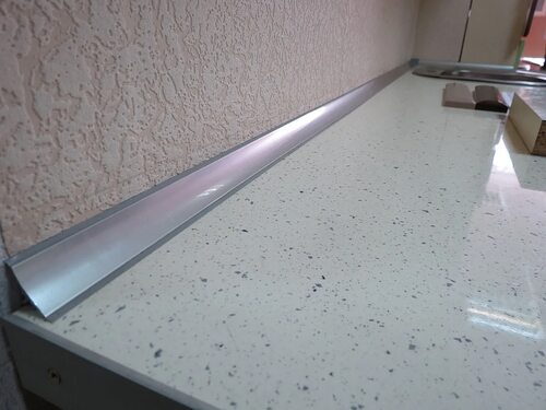 После того, как плинтус будет готов, приступайте к его установке. Определите необходимую длину, отрежьте лишнее, прикрепите плинтус к столешнице.