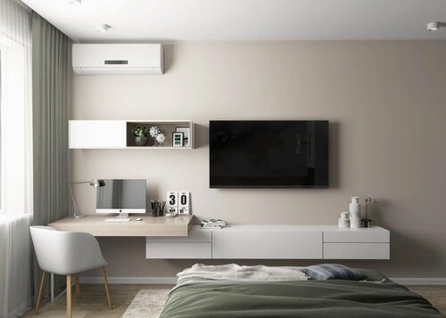Особенности навесной тумбы под телевизор со столом