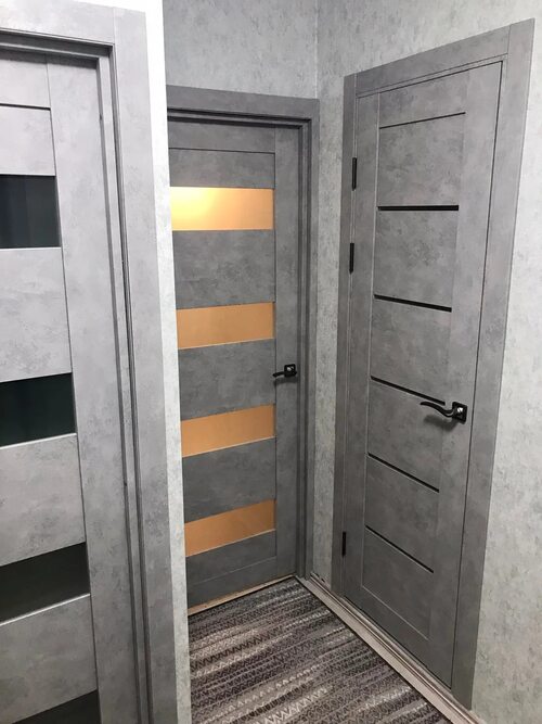 Для того чтобы подчеркнуть современный стиль интерьера, рекомендуется выбирать двери серого бетона с минималистичными дверными ручками и простыми геометрическими формами.
