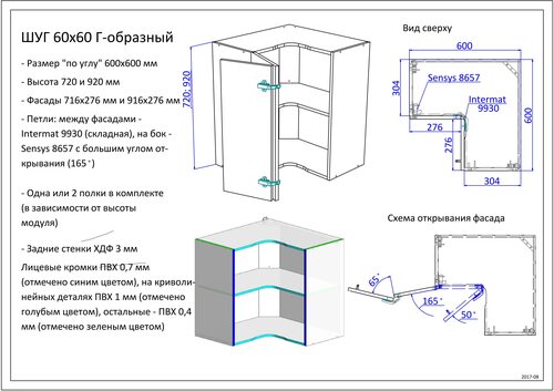 Угловой кухонный шкаф навесной чертежи