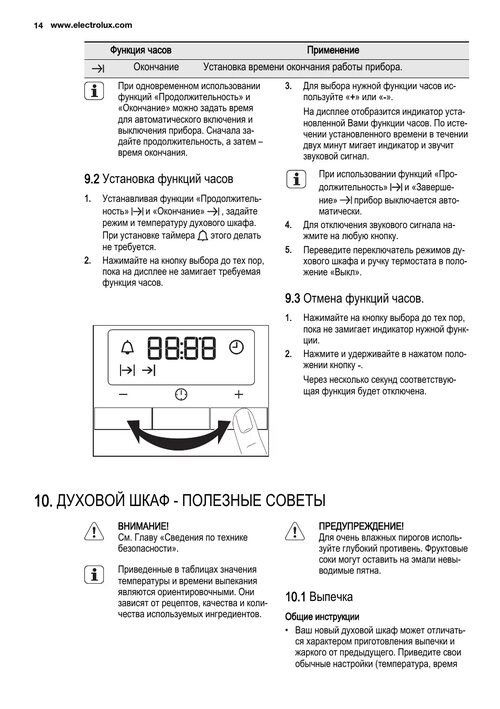 Electrolux духовой шкаф инструкция функции духового шкафа