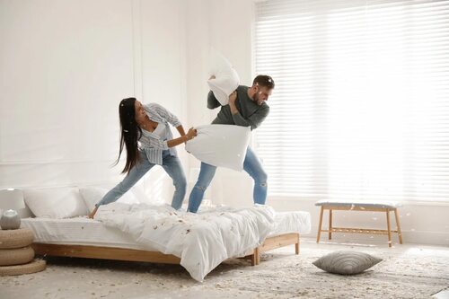 Подушечная битва на кровати - это забавное развлечение, которое приносит радость и веселье как детям, так и взрослым. Во время битвы с подушками на кровати можно отдохнуть от повседневных забот и погрузиться в атмосферу игры и веселья.