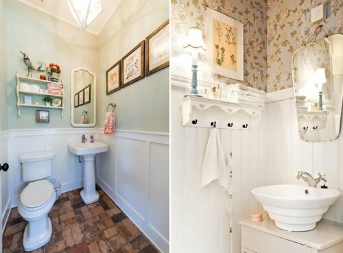 Одной из основных особенностей прованского стиля является использование нежных пастельных оттенков. Для маленького туалета подойдут цвета лаванды, мятного мороженого, светло-голубого и кремового.