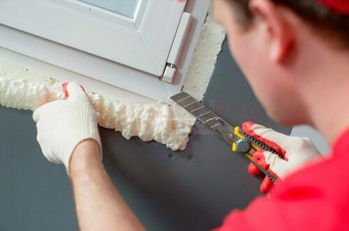 Фото 2: Утепление оконных проемов с использованием монтажной пены.