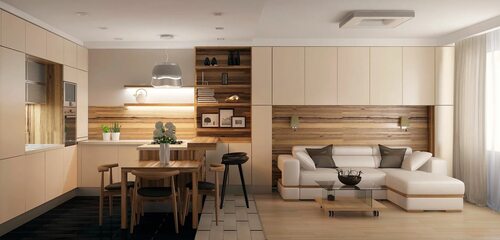 Идеи для кухни-гостиной с мебелью в одном стиле