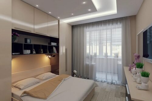 2. Свет и пространство. Используйте светлые оттенки, зеркала и стекло, чтобы визуально увеличить пространство спальни. Также не забывайте организовать удобный выход на балкон, чтобы можно было наслаждаться свежим воздухом и видом из окна.