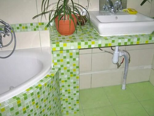 5. Столешница из мозаики. Творческие идеи по созданию столешницы из мозаики для ванной комнаты, с подробными фотографиями.