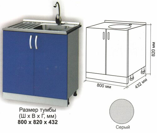 Шкаф-тумба, (600х500х720, оснащена мойкой, одна чаша; рег. Нога 100мм)