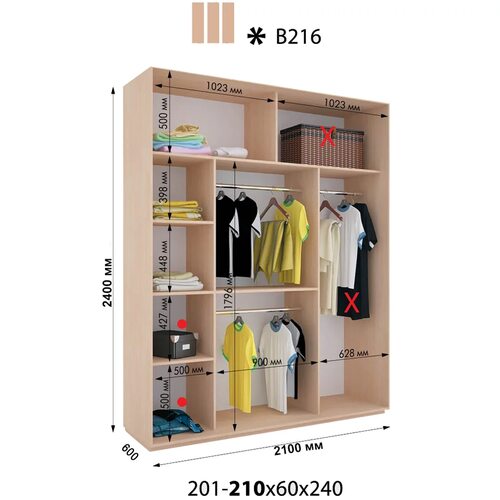 Ниже представлены фотографии с примерами успешного наполнения шкафов купе 2100. Вы сможете найти вдохновение для организации своего пространства и создания удобной системы хранения.