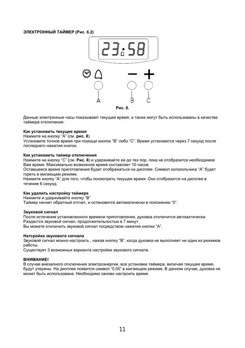 Перед включением шкафа, удерживайте кнопку с символом часов или настройки времени до появления мигающего индикатора. Это означает, что шкаф находится в режиме настройки времени.