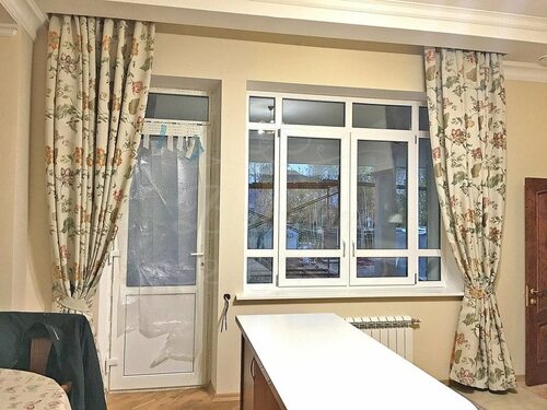 Шторы на кухонное окно с балконом
