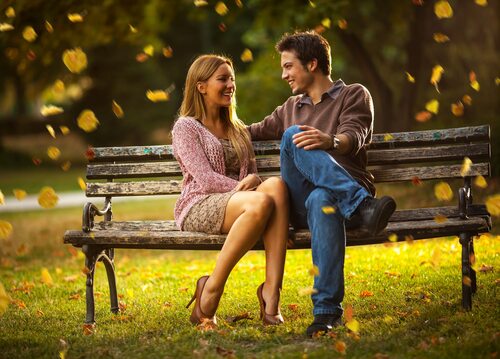 Двое влюбленных на лавочке