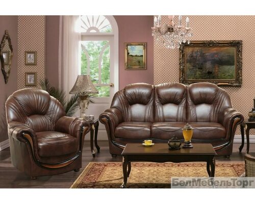 Диван и два кресла "Кинг" (3м+12+12), натуральная кожа № 1060
