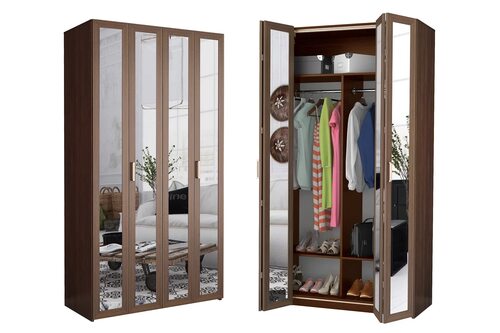 Шкафы-гармошки с зеркалами являются популярным выбором для оформления спальни или прихожей. Они сочетают в себе функциональность и стиль, предлагая удобное хранение одежды и аксессуаров, а также служат зеркалами для примерки.