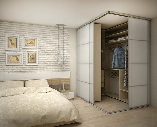 При планировке гардеробной в небольшой спальне необходимо учитывать особенности помещения. Используйте каждый уголок, включая вертикальное пространство. Встроенные шкафы, откидные полки, выдвижные ящики – все это позволит сделать гардеробную функциональной и удобной.