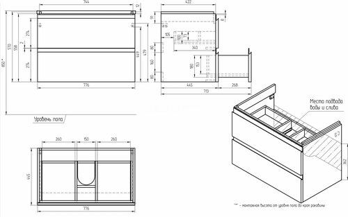 Тумба moduo slim 80 имеет компактные размеры, что делает ее отличным выбором для небольших помещений. Она оснащена удобными ящиками и полками, обеспечивающими удобное хранение ваших вещей.