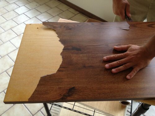 Начните с края самоклейки, аккуратно поддевая её лопаткой или отверткой. Постепенно двигайтесь вдоль поверхности, следя за тем, чтобы не повредить мебель. Если самоклейка сопротивляется, можно повторно нагреть её феном.