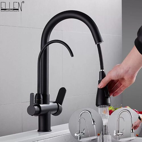 Кран на кухню с выдвижной лейкой и фильтром для воды - это удобное и функциональное решение для вашей кухни. Он позволяет получать чистую питьевую воду прямо из крана, а также удобно моется посуда и продукты.