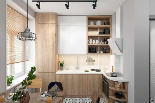 Одной из ключевых особенностей скандинавского стиля является использование естественных материалов, таких как дерево, камень и хлопок. В кухне площадью 5 кв м в скандинавском стиле можно использовать деревянные элементы в отделке мебели и столешниц, что придаст интерьеру теплоту и уют. Кроме того, важно использовать светлые оттенки, чтобы визуально расширить пространство.