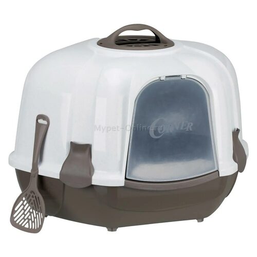 Далее следует представить различные модели угловых домиков для кошачьего туалета с описанием и фотографиями.