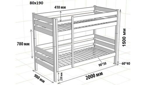 Стандартные размеры двухъярусной кровати