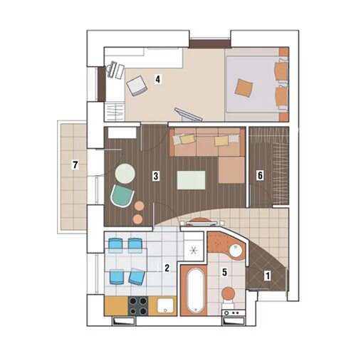 1. Фото 1: Пример планировки с проходными комнатами в современном стиле.